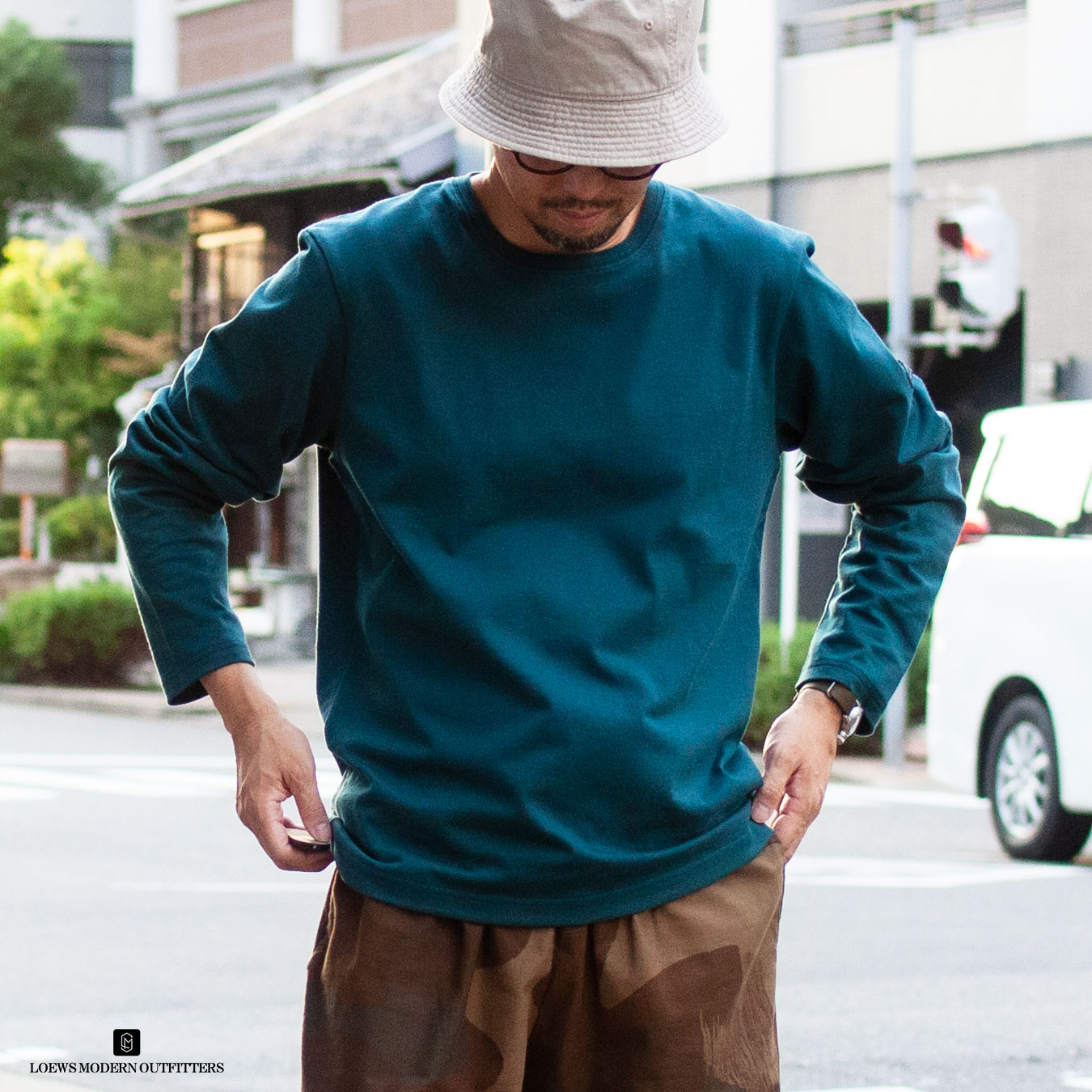 BUY NOW >>> オーガニック超長綿タック衿長袖Tシャツ|撚り杢グリーン