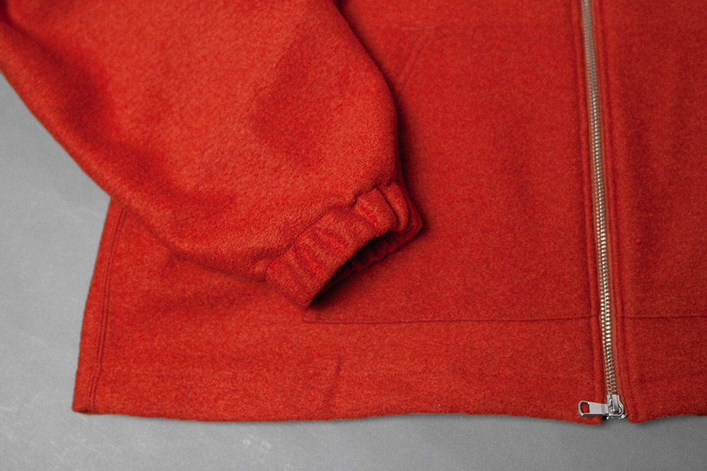 ウールナイロンのブークレ生地を使用した、素材感たっぷりなアウタータイプのジップパーカー